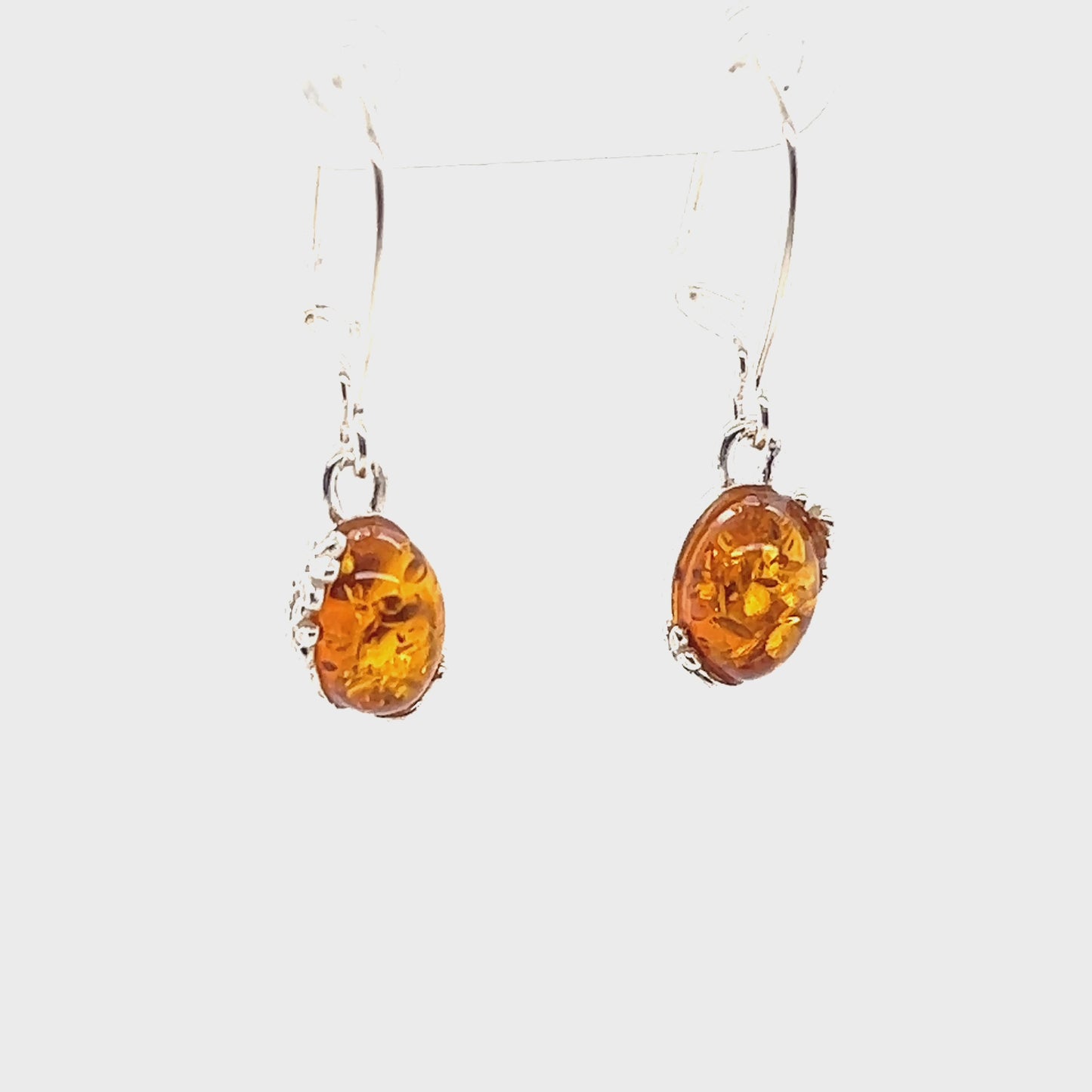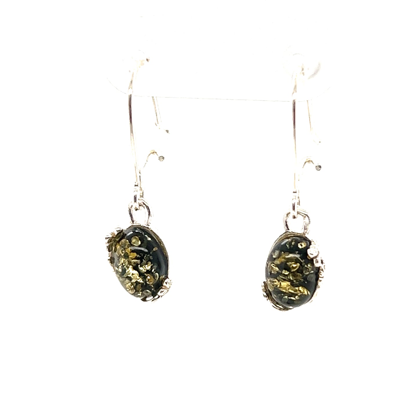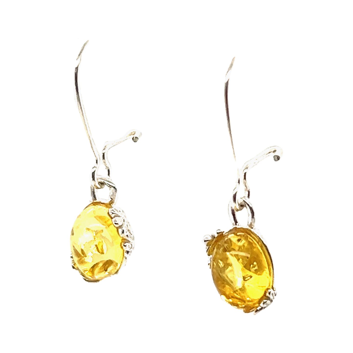 These dainty Baltic amber earrings captivate the eye with their glowing earthy hues. The luminous amber is gracefully laced with a soft floral setting, adding a touch of romantic charm. These minimal earrings will grace you with the natural elegance of amber, known to promote calmness, self-confidence, and self-empowerment by grounding you in its ancient sap. Choose from the rich honey color of cognac or the brilliant yellow of the lemon amber; for a more mysterious vibe, choose the dark and fierce green amber. Can't decide? Why not get all three to fit the ever-changing seasons.