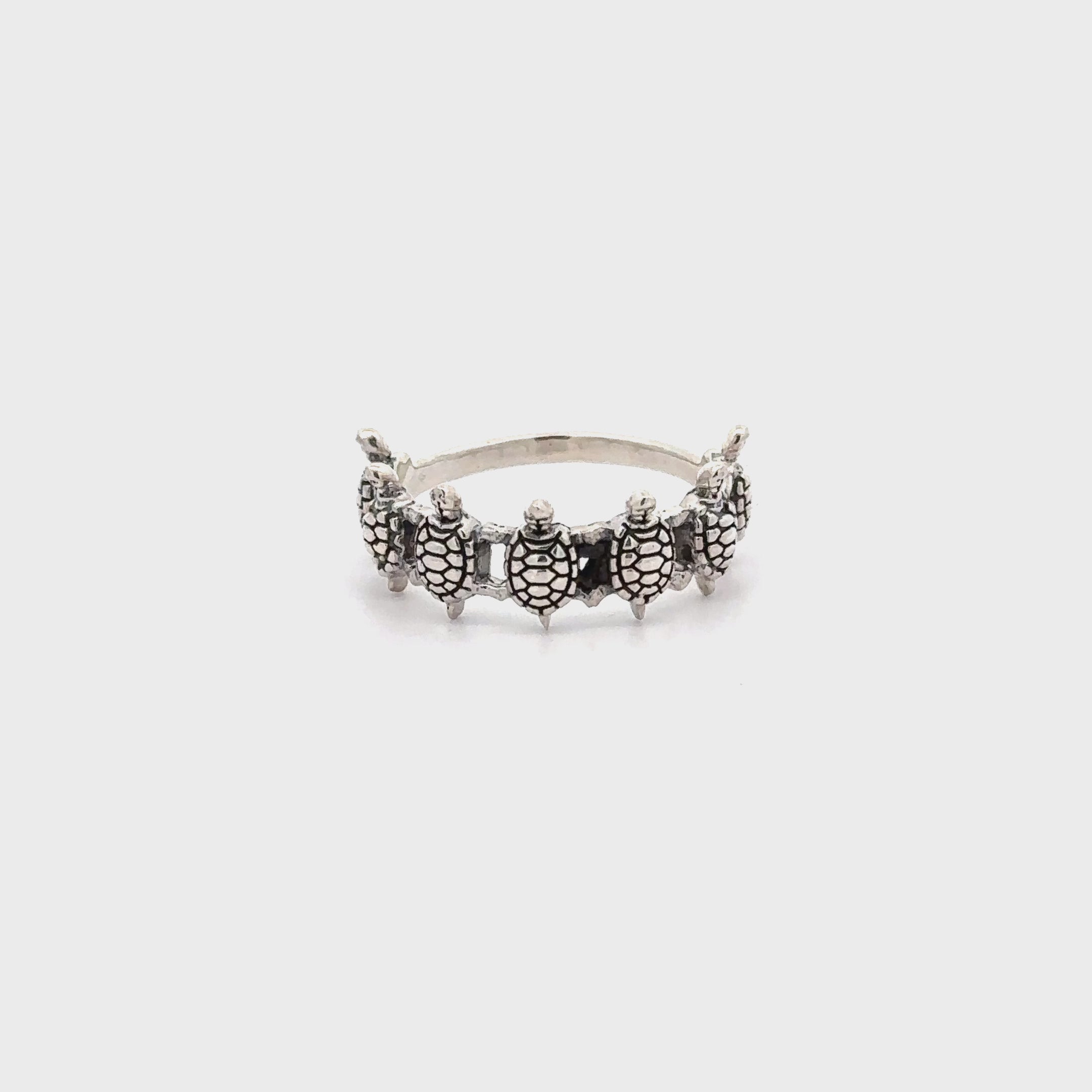 Beautiful ring with seven vertical turtles across the band.
